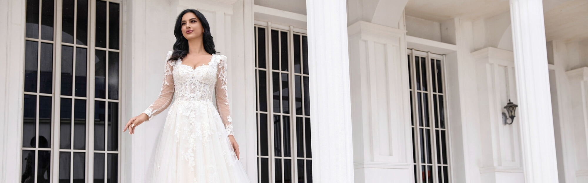 Modest Elegant Long Sleeves Handmade Wedding Dress and open back LVB2535