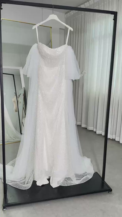 Atemberaubendes Brautkleid im Meerjungfrauen-Stil mit Perlenbesatz, Schlitz und abnehmbaren Ärmeln LVB2625 von AND Bride