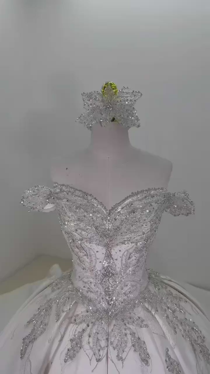 Luxury Ball Gown Satin Handmade Wedding Dress LVB2525